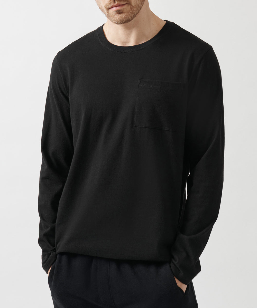 ATM Collection - Men - Black Compact Jersey Oversized Long Sleeve Patch Pocket Crew Neck Tee