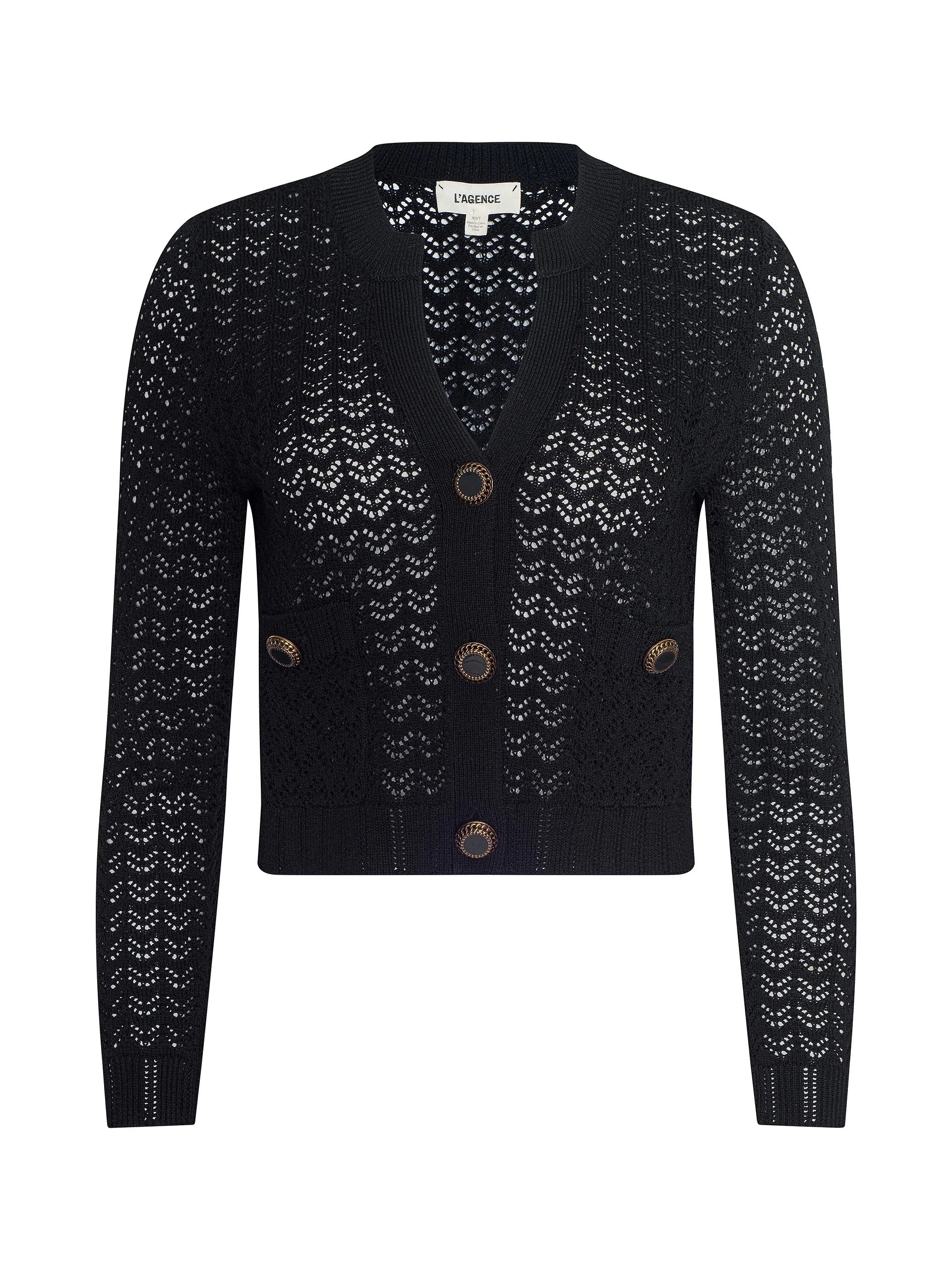 L'AGENCE - women - Black Orla Pointelle Knit Cardigan