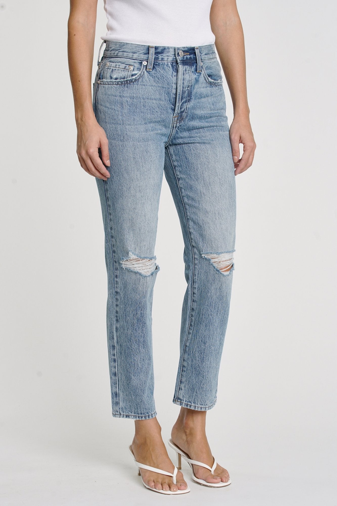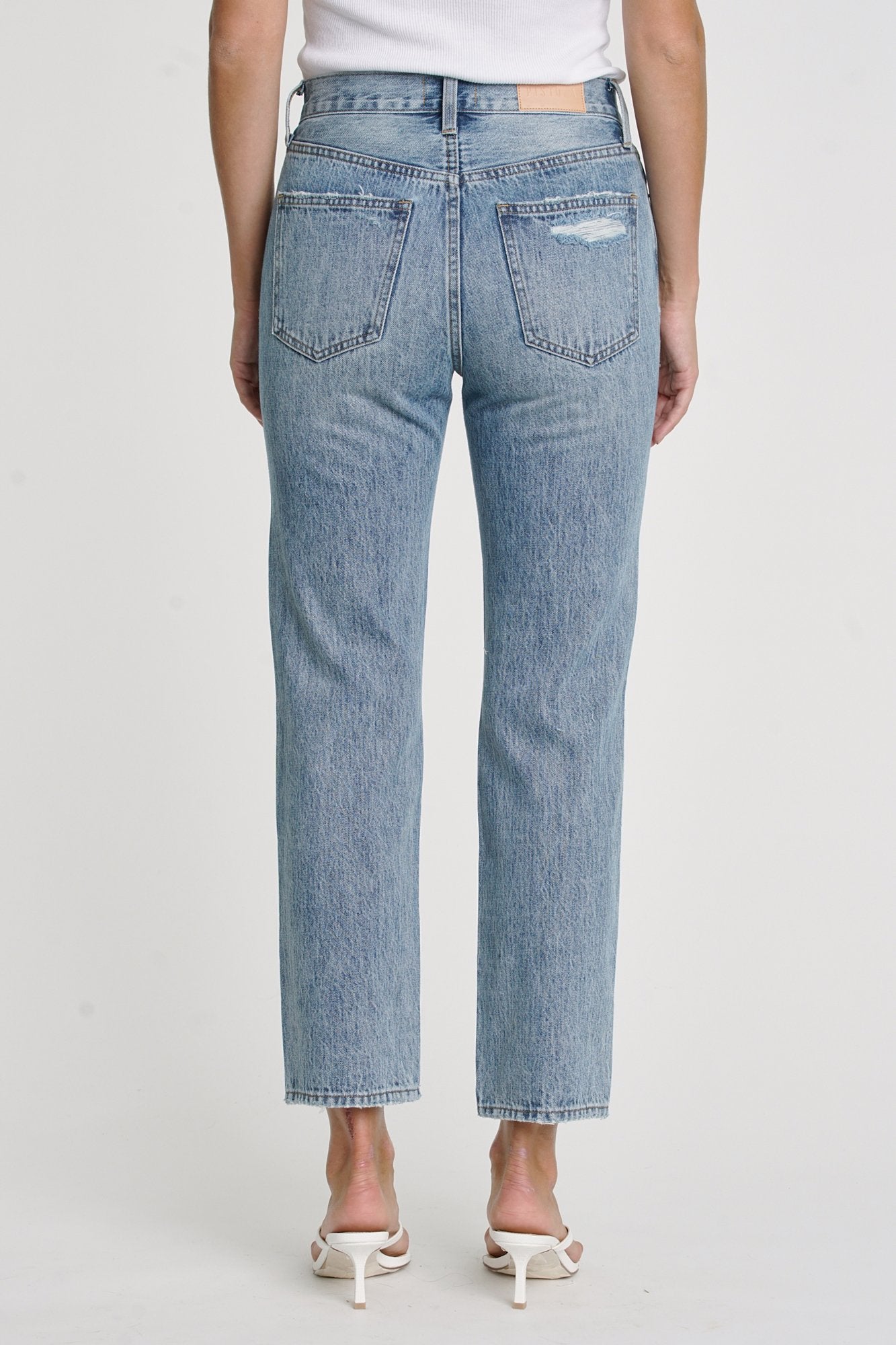 The Charlie is a high-rise straight leg that hugs your waist and hips and is straight throughout.