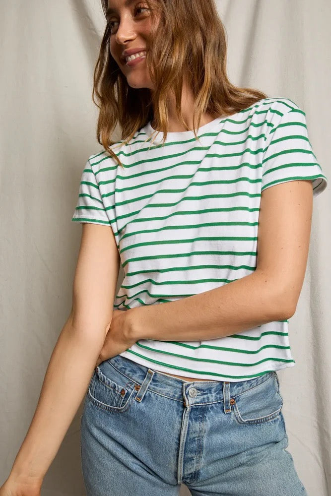 Perfect White Tee - Women- Grass Stripe Everett Boxy Tee
