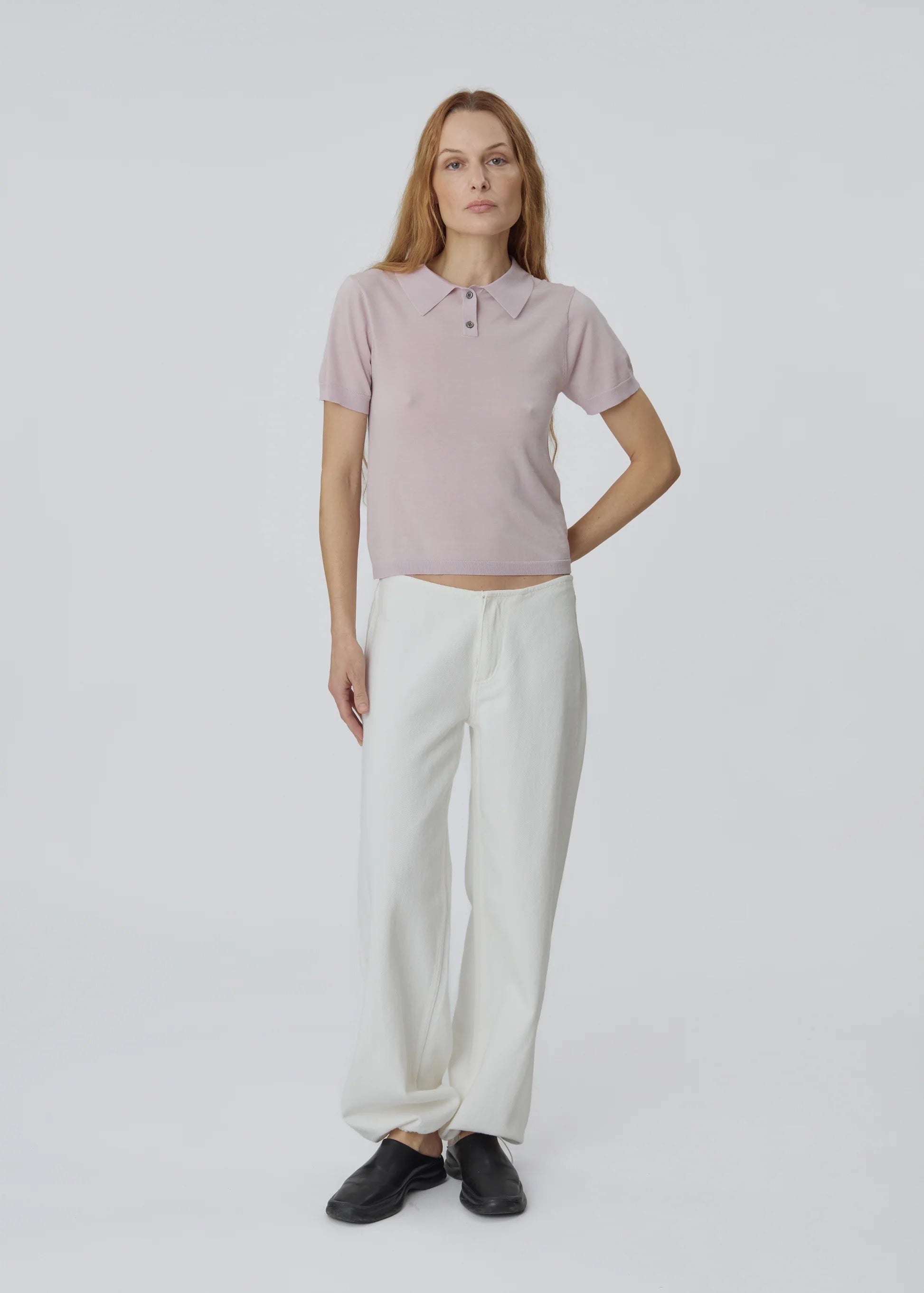 The Sport Jean is a low-rise, relaxed-leg jean with drawstring toggles at both hems, allowing for both a cinched genie leg or straight leg wear. Featuring a waistband-free construction and a discreet zipper closure for an uninterrupted silhouette.